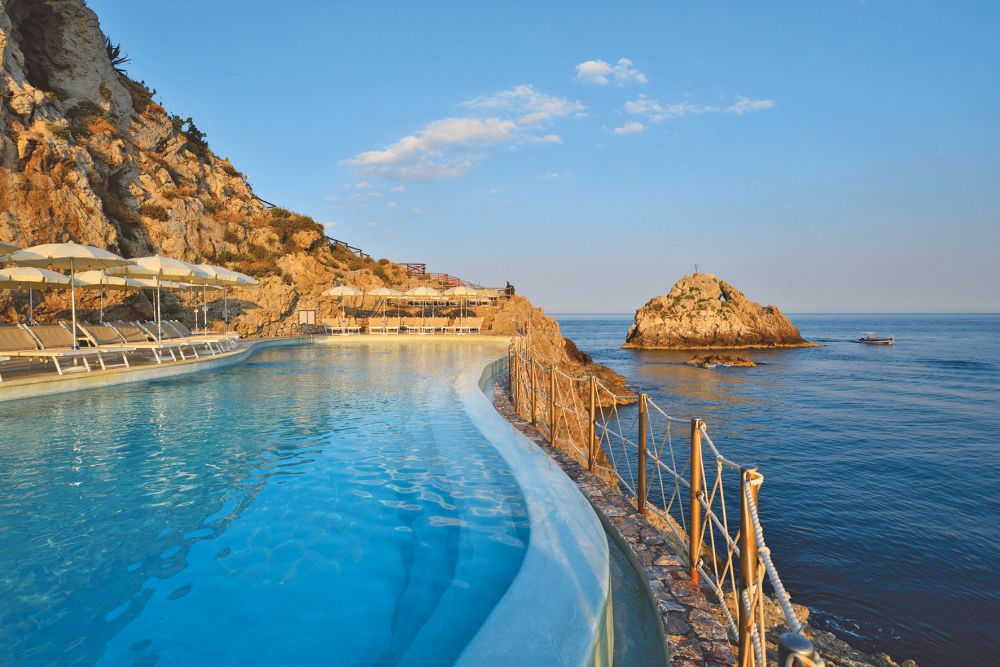 3. UNAHOTELS Capotaormina, Sicilië – White Lotus meets beachclub vibes